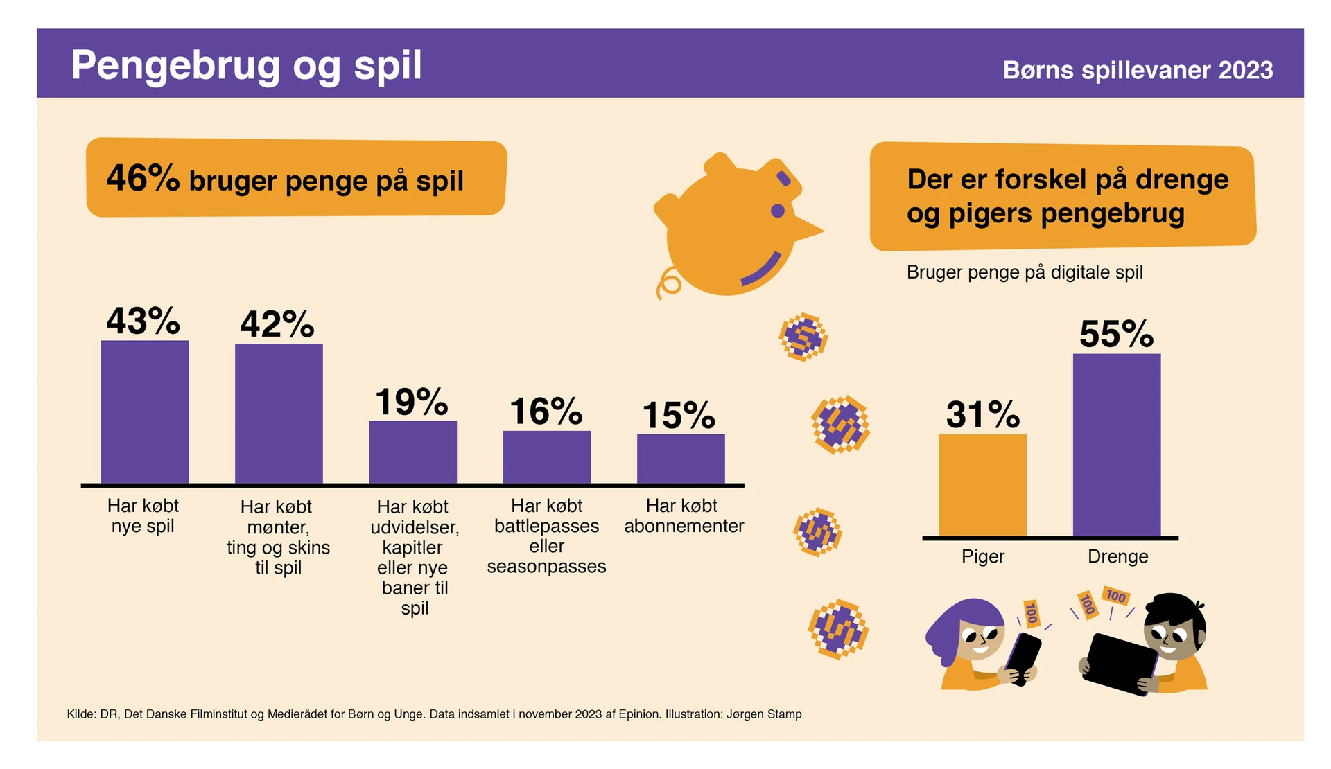 Undersøgelsens datagrundlag består af svar fra 1036 respondenter, og den indeholder information om en bred vifte af aktuelle temaer om børn og gaming – fx tidsforbrug, pengebrug og forældreinvolvering. Epinion har stået for dataindsamlingen, som foregik i november 2023.